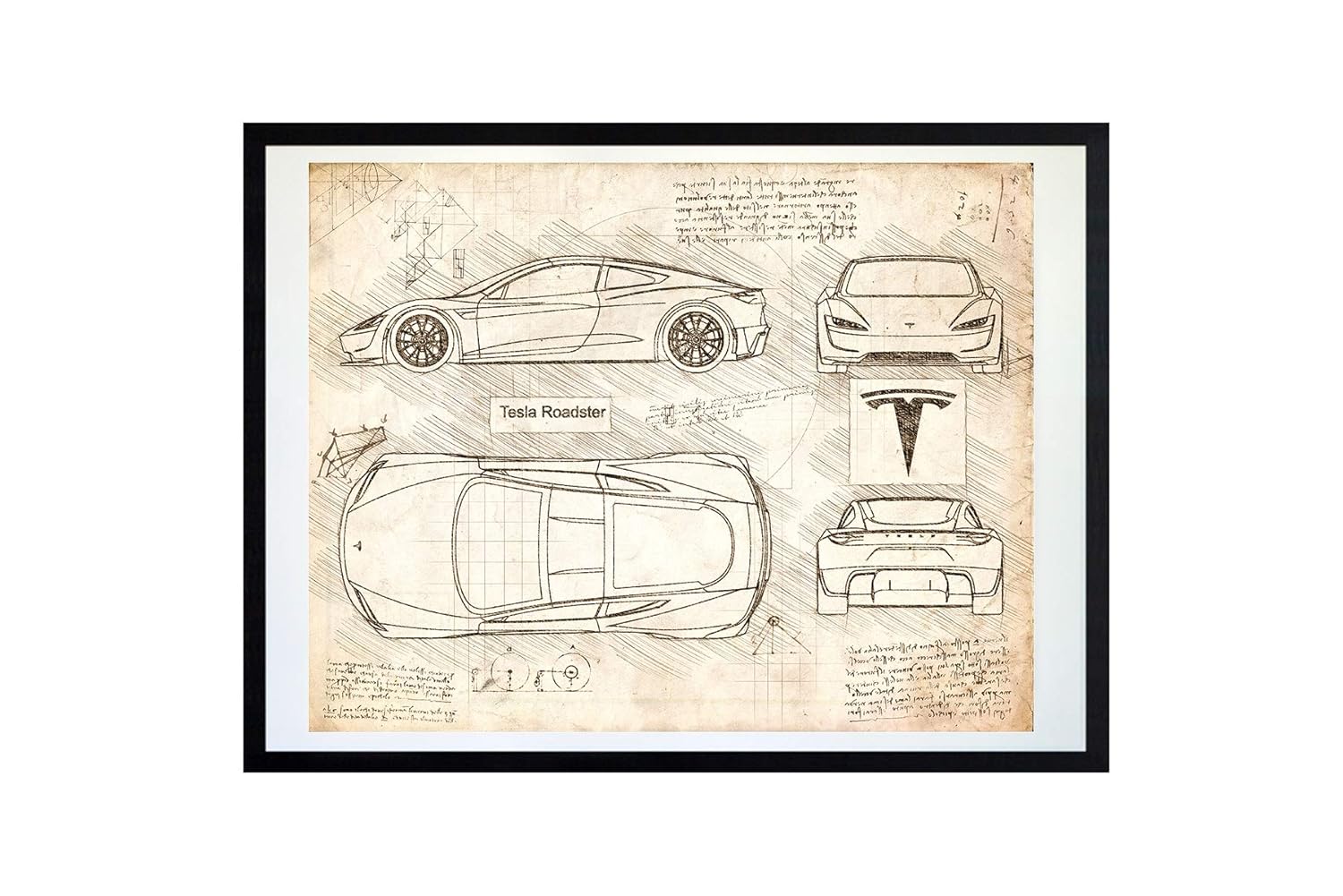 Dolanpaperco 449 Tesla Roadster 2020 Art Print Da Vinci Sketch Unframed Multiple Size Color Options 11x14 Vintage