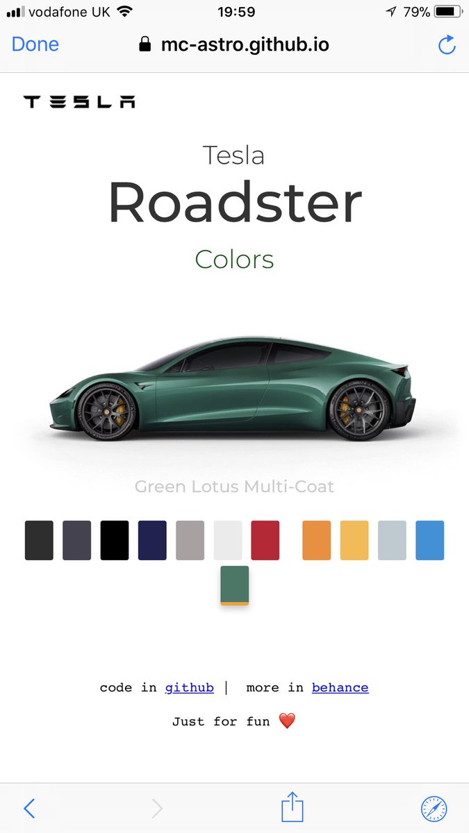 Such is the Article Tesla Roadster Colors