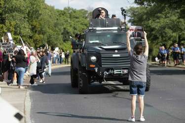 Alex Jones Shows Up In Armored Vehicle And Confronts Antifa At Trump Rally In Dallas Texas