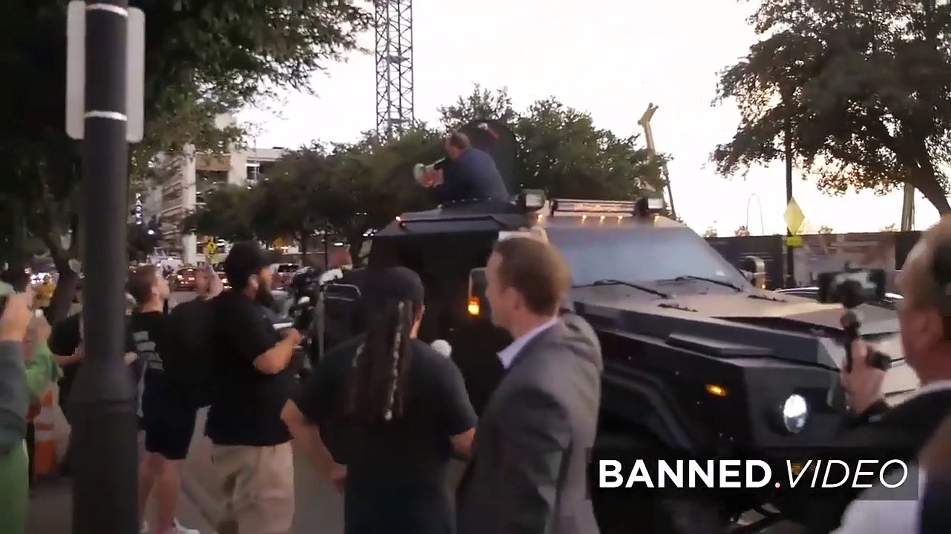 Alex Jones 10 17 19 Bullhorns Dallas Armored Vehicle
