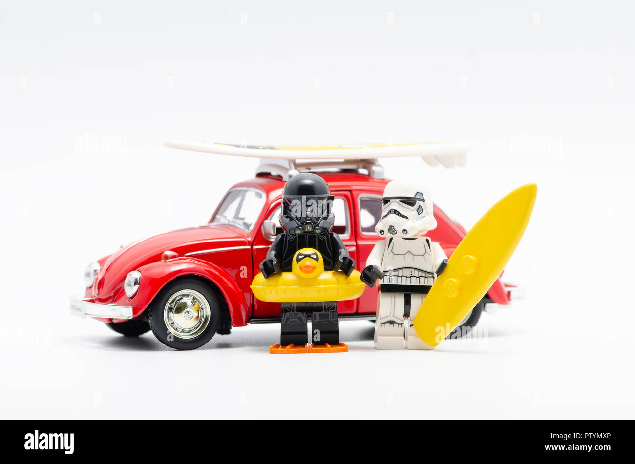Robin On Vacation With Volkswagen Beetle Car Lego Minifigures Are